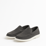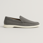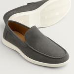 Mit einem tiefen Grauton und einer weichen, Wildleder-texturierten Oberfläche bieten diese Loafers diskrete Eleganz, die mühelos von Tag zu Nacht übergeht.